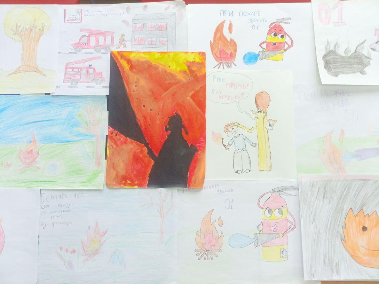 С детьми были проведены занятия – беседы: “Осторожно, электроприборы!”, «Безопасное обращение с огнём», «Главное, не паниковать!», «А что если вдруг пожар?»; просмотр презентации: «Пожарная безопасность», выставка рисунков на тему "Пожар".